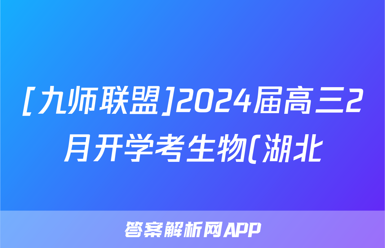 [九师联盟]2024届高三2月开学考生物(湖北)答案正在持续更新,目前2024-2025衡水金卷先享题答案网为大家整理了相关试题及答案,供大家查缺补漏,高效提升成绩。