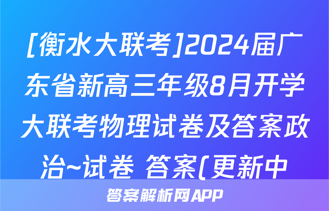 [衡水大联考]2024届广东省新高三年级8月开学大联考物理试卷及答案政治~试卷 答案(更新中)正在持续更新,目前2024-2025衡水金卷先享题答案网为大家整理了相关试题及答案,供大家查缺补漏,高效提升成绩。