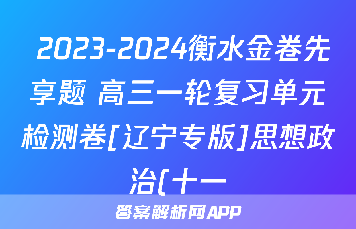 2023-2024衡水金卷先享题 高三一轮复习单元检测卷[辽宁专版]思想政治(十一)11试题正在持续更新,目前2024-2025衡水金卷先享题答案网为大家整理了相关试题及答案,供大家查缺补漏,高效提升成绩。