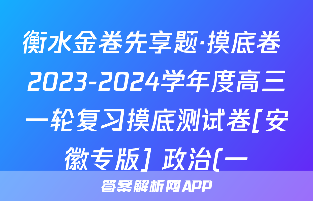 衡水金卷先享题·摸底卷 2023-2024学年度高三一轮复习摸底测试卷[安徽专版] 政治(一)1试题正在持续更新,目前2024-2025衡水金卷先享题答案网为大家整理了相关试题及答案,供大家查缺补漏,高效提升成绩。