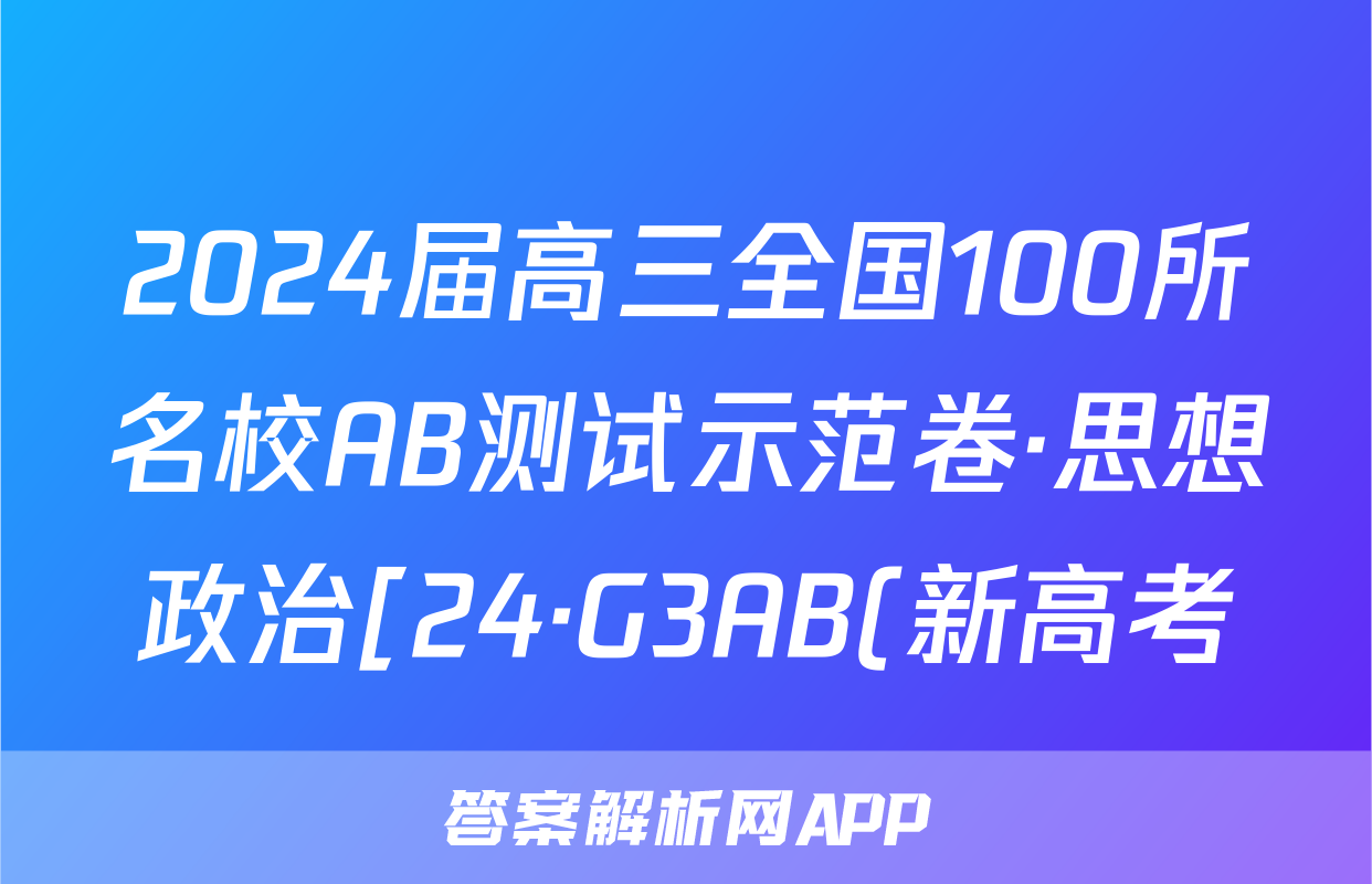 2024届高三全国100所名校AB测试示范卷·思想政治[24·G3AB(新高考)·思想政治-R-必考-QGC]七试题正在持续更新,目前2024-2025衡水金卷先享题答案网为大家整理了相关试题及答案,供大家查缺补漏,高效提升成绩。