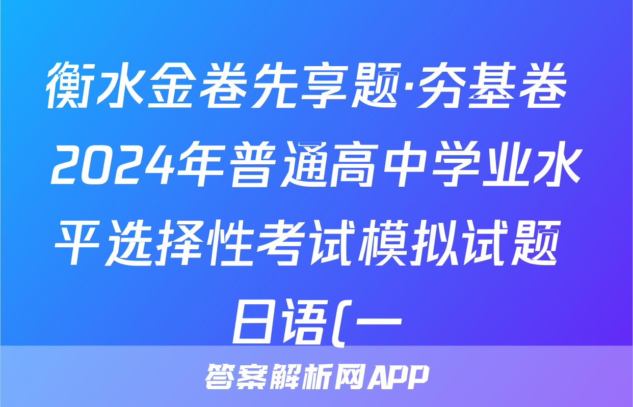 衡水金卷先享题·夯基卷 2024年普通高中学业水平选择性考试模拟试题 日语(一)试题正在持续更新,目前2024-2025衡水金卷先享题答案网为大家整理了相关试题及答案,供大家查缺补漏,高效提升成绩。