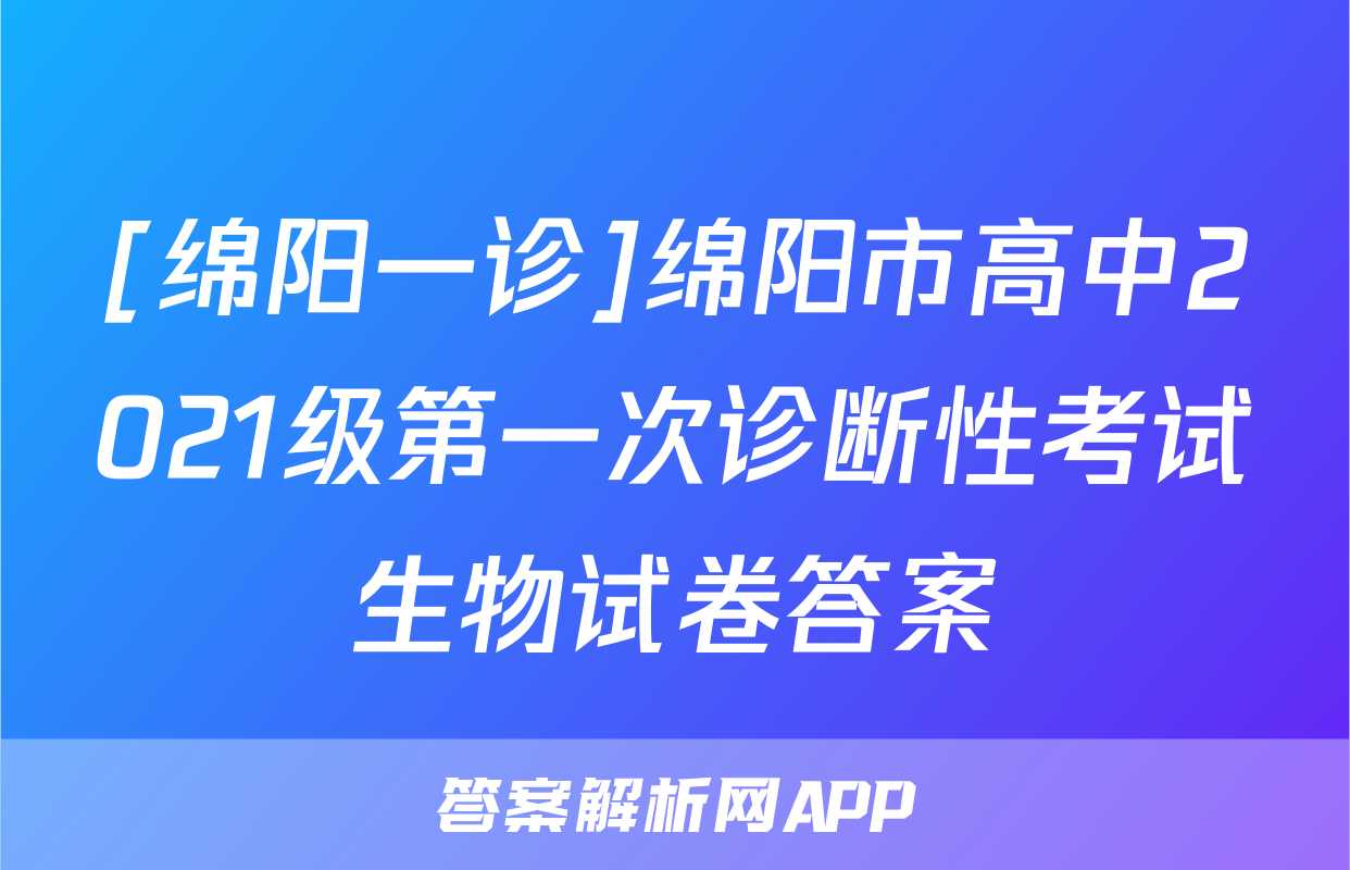 [绵阳一诊]绵阳市高中2021级第一次诊断性考试生物试卷答案,目前2024届衡水金卷先享题答案网已经汇总了[