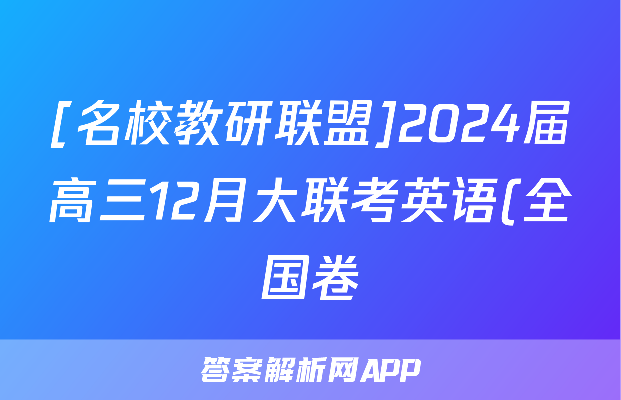 [名校教研联盟]2024届高三12月大联考英语(全国卷)试题