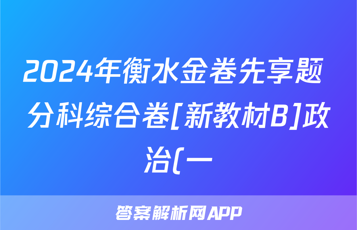 2024年衡水金卷先享题 分科综合卷[新教材B]政治(一)1试题正在持续更新,目前2024-2025衡水金卷先享题答案网为大家整理了相关试题及答案,供大家查缺补漏,高效提升成绩。