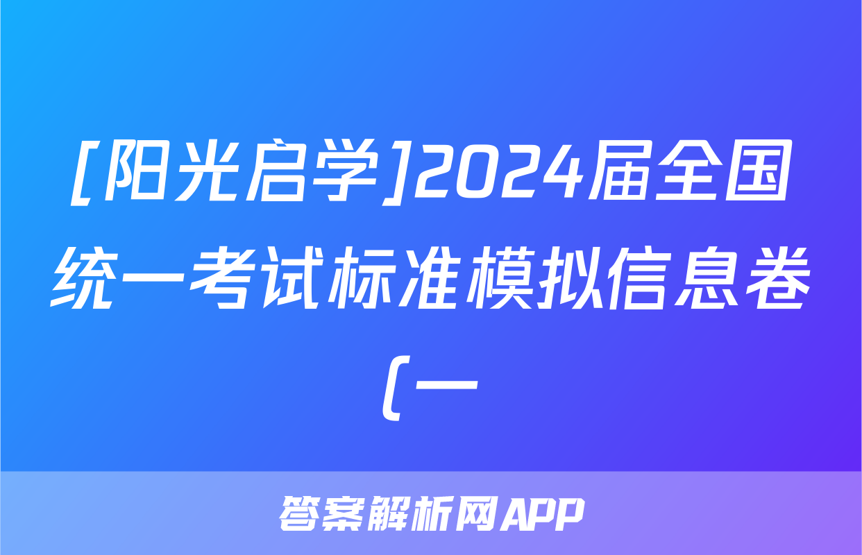 [阳光启学]2024届全国统一考试标准模拟信息卷(一)1英语LL试题正在持续更新,目前2024-2025衡水金卷先享题答案网为大家整理了相关试题及答案,供大家查缺补漏,高效提升成绩。