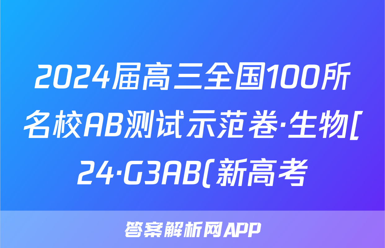 2024届高三全国100所名校AB测试示范卷·生物[24·G3AB(新高考)·生物-R-必考-HEB]六试题正在持续更新,目前2024-2025衡水金卷先享题答案网为大家整理了相关试题及答案,供大家查缺补漏,高效提升成绩。
