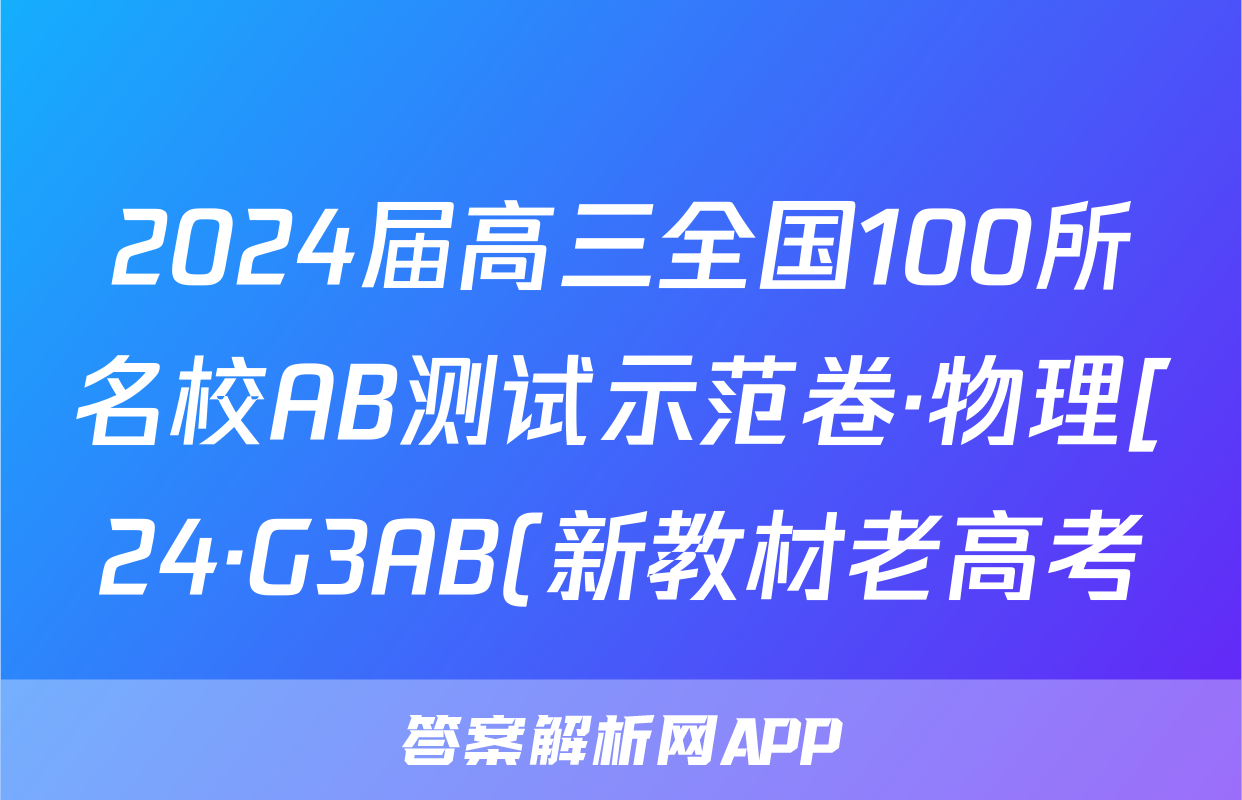 2024届高三全国100所名校AB测试示范卷·物理[24·G3AB(新教材老高考)·物理-R-必考-FJ]一试题正在持续更新,目前2024-2025衡水金卷先享题答案网为大家整理了相关试题及答案,供大家查缺补漏,高效提升成绩。