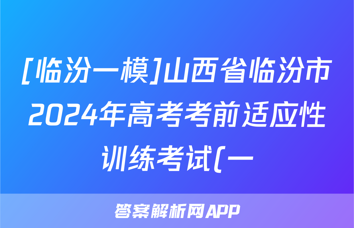[临汾一模]山西省临汾市2024年高考考前适应性训练考试(一)1英语试题正在持续更新,目前2024-2025衡水金卷先享题答案网为大家整理了相关试题及答案,供大家查缺补漏,高效提升成绩。