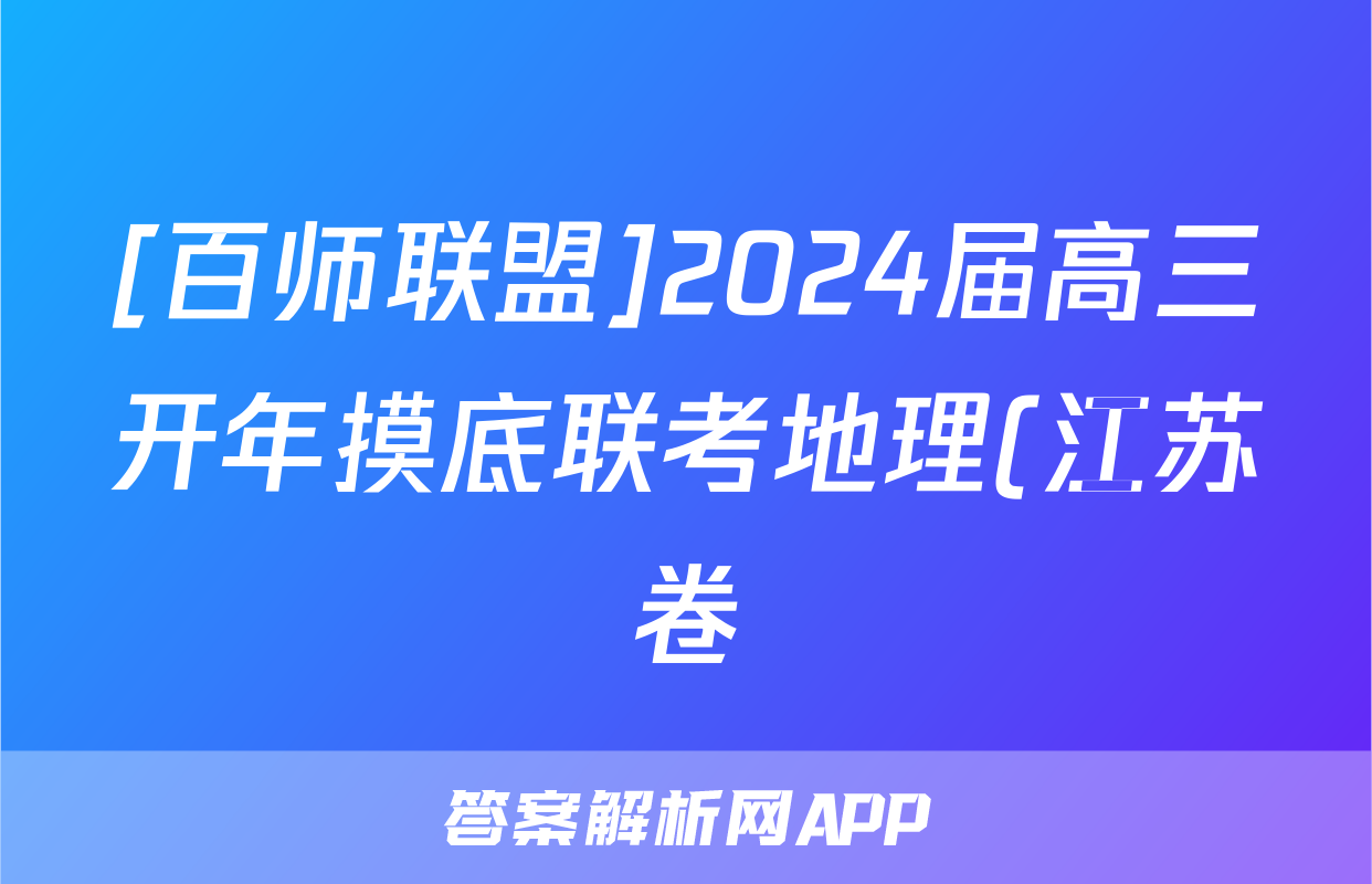 [百师联盟]2024届高三开年摸底联考地理(江苏卷)答案正在持续更新,目前2024-2025衡水金卷先享题答案网为大家整理了相关试题及答案,供大家查缺补漏,高效提升成绩。