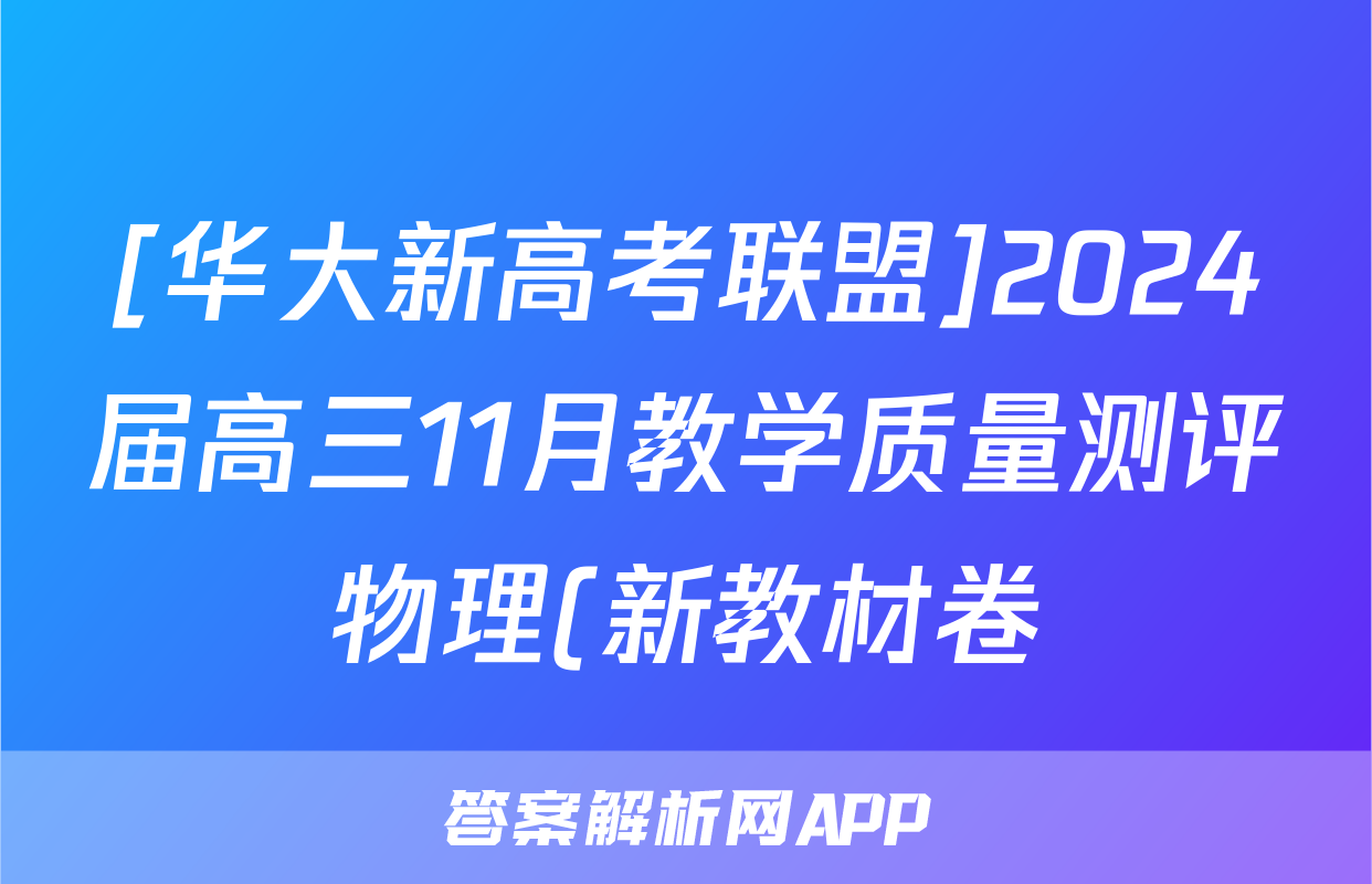 [华大新高考联盟]2024届高三11月教学质量测评物理(新教材卷)答案正在持续更新,目前2024-2025衡水金卷先享题答案网为大家整理了相关试题及答案,供大家查缺补漏,高效提升成绩。