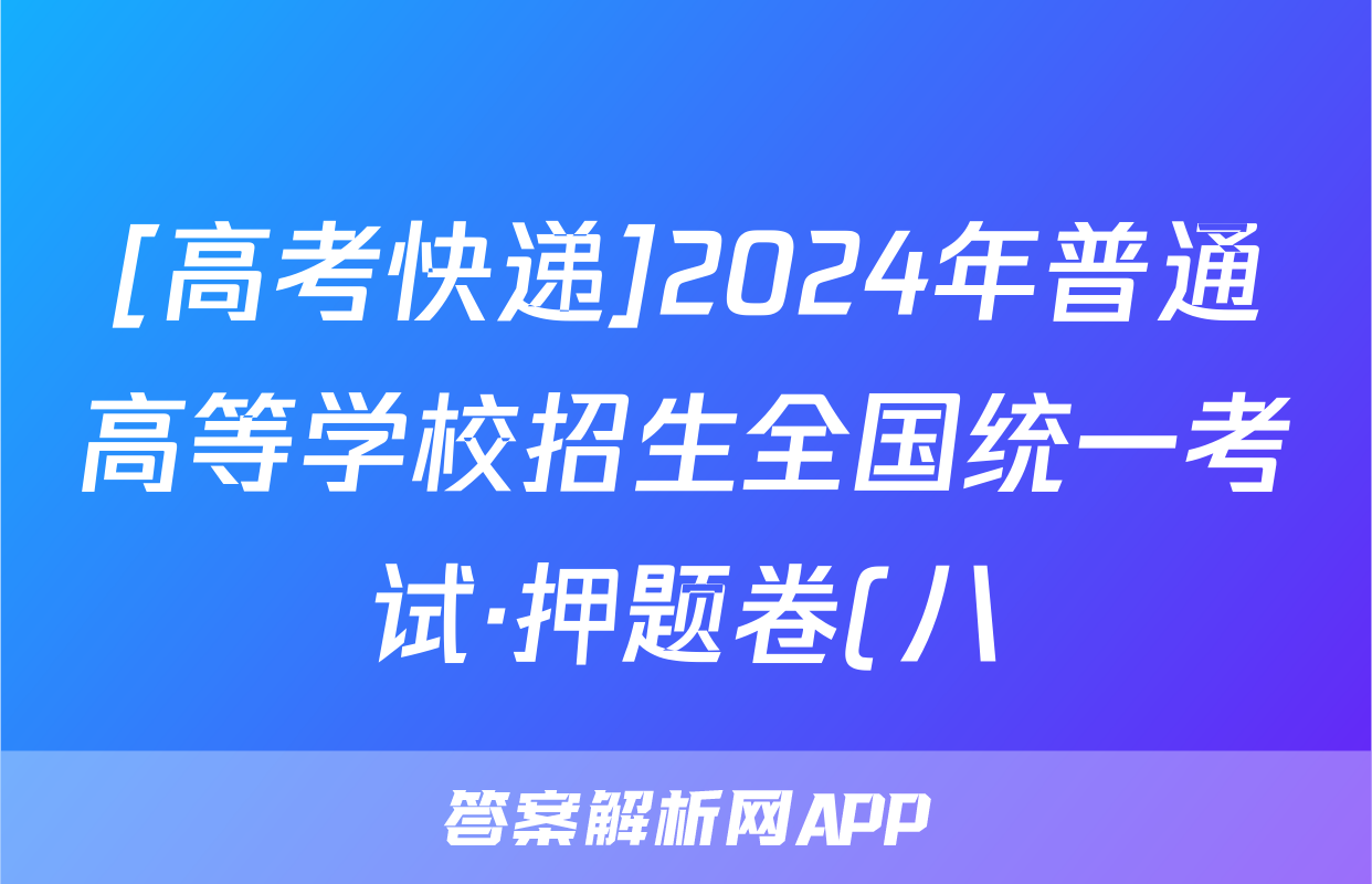 [高考快递]2024年普通高等学校招生全国统一考试·押题卷(八)8化学(新高考)试题正在持续更新,目前2024-2025衡水金卷先享题答案网为大家整理了相关试题及答案,供大家查缺补漏,高效提升成绩。