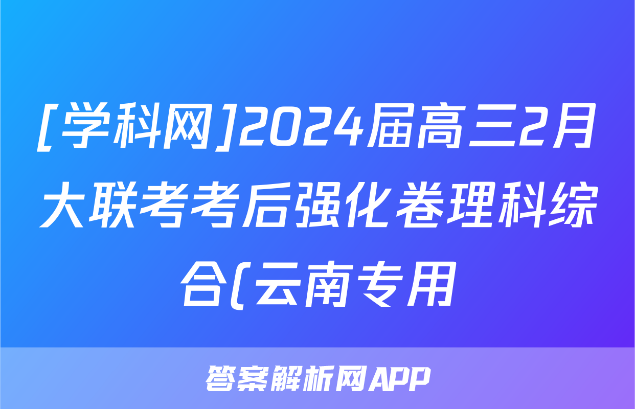 [学科网]2024届高三2月大联考考后强化卷理科综合(云南专用)答案正在持续更新,目前2024-2025衡水金卷先享题答案网为大家整理了相关试题及答案,供大家查缺补漏,高效提升成绩。