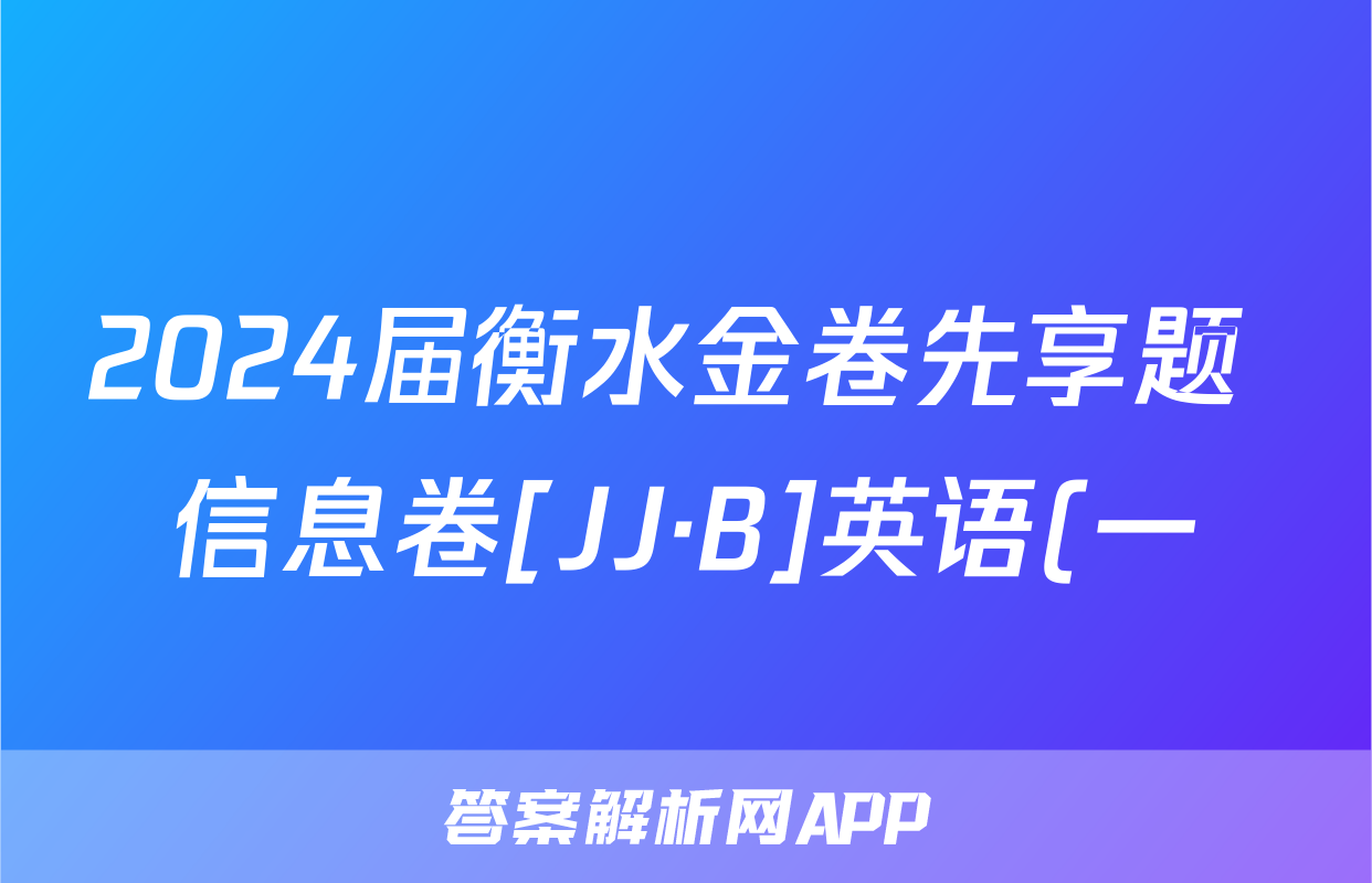 2024届衡水金卷先享题 信息卷[JJ·B]英语(一)1答案正在持续更新,目前2024-2025衡水金卷先享题答案网为大家整理了相关试题及答案,供大家查缺补漏,高效提升成绩。