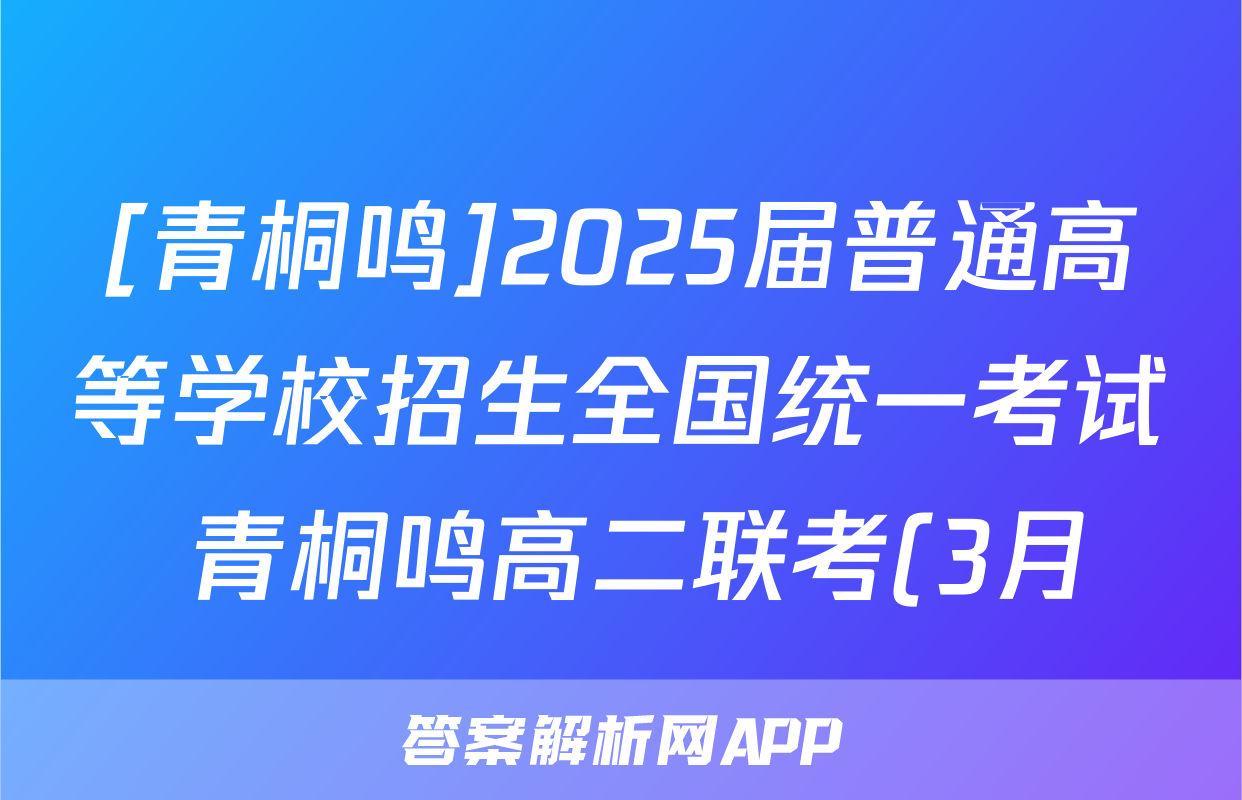 [青桐鸣]2025届普通高等学校招生全国统一考试 青桐鸣高二联考(3月)英语试题正在持续更新,目前2024-2025衡水金卷先享题答案网为大家整理了相关试题及答案,供大家查缺补漏,高效提升成绩。