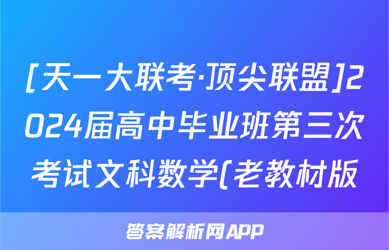 [天一大联考·顶尖联盟]2024届高中毕业班第三次考试文科数学(老教材版)试题正在持续更新,目前2024-2025衡水金卷先享题答案网为大家整理了相关试题及答案,供大家查缺补漏,高效提升成绩。
