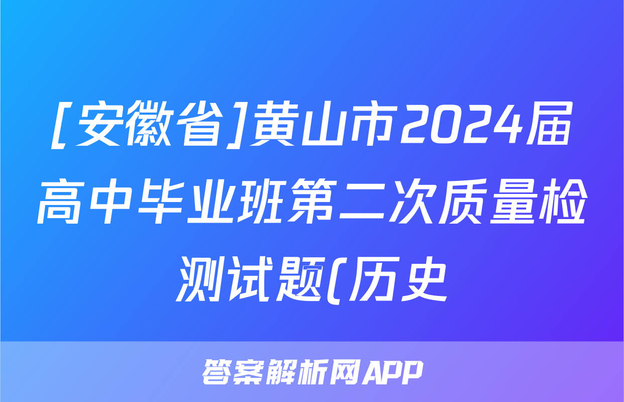 [安徽省]黄山市2024届高中毕业班第二次质量检测试题(历史)正在持续更新,目前2024-2025衡水金卷先享题答案网为大家整理了相关试题及答案,供大家查缺补漏,高效提升成绩。