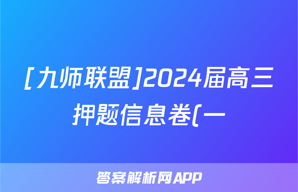 [九师联盟]2024届高三押题信息卷(一)1化学(XKB-E)试题正在持续更新,目前2024-2025衡水金卷先享题答案网为大家整理了相关试题及答案,供大家查缺补漏,高效提升成绩。