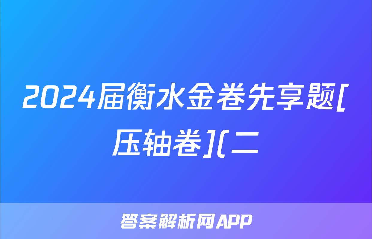2024届衡水金卷先享题[压轴卷](二)2试题(化学)正在持续更新,目前2024-2025衡水金卷先享题答案网为大家整理了相关试题及答案,供大家查缺补漏,高效提升成绩。