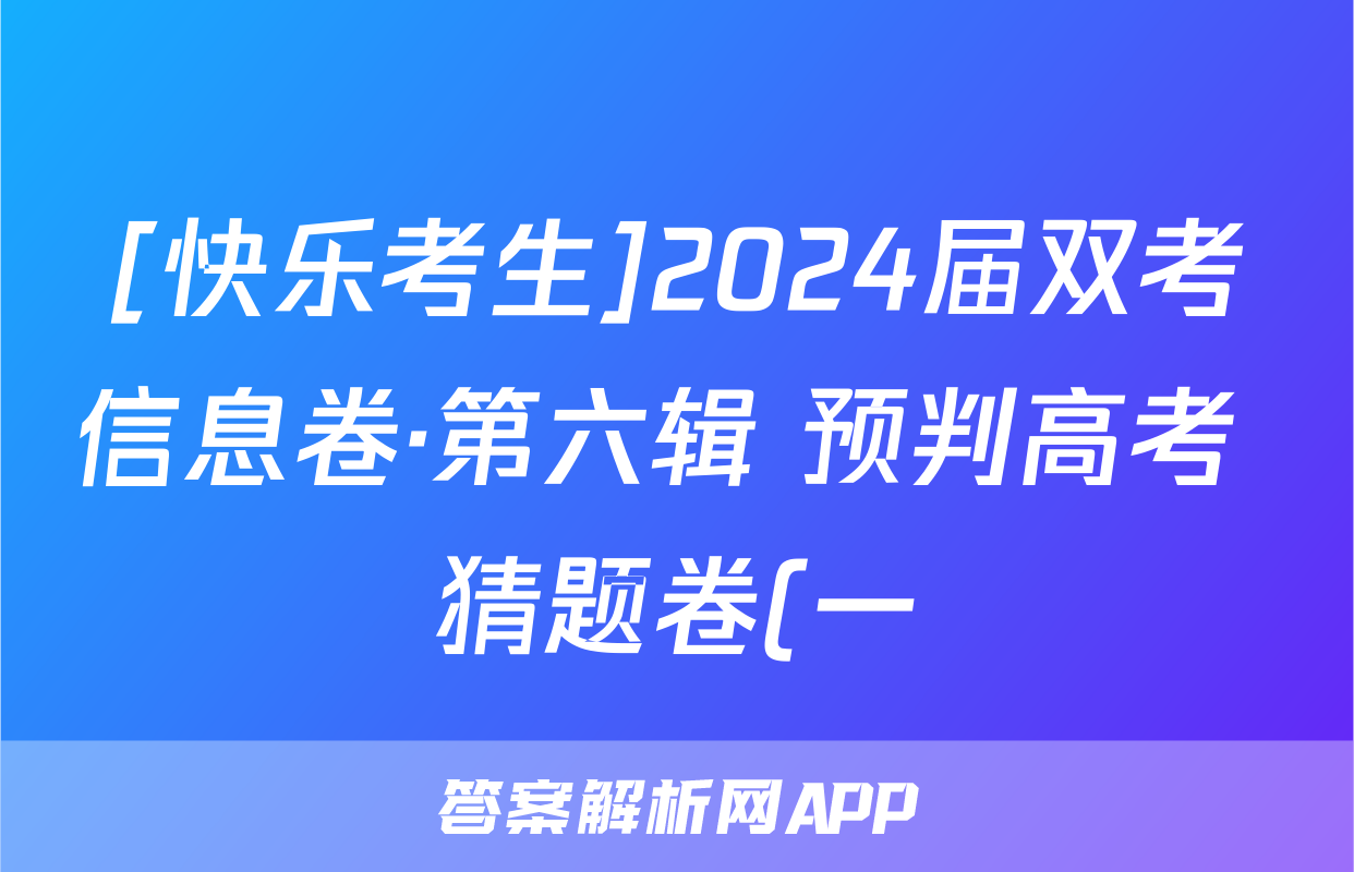 1、快乐考生 2024届双考信息卷·第六辑 预判高考 猜题卷(一)1试卷及答案试题(历史)