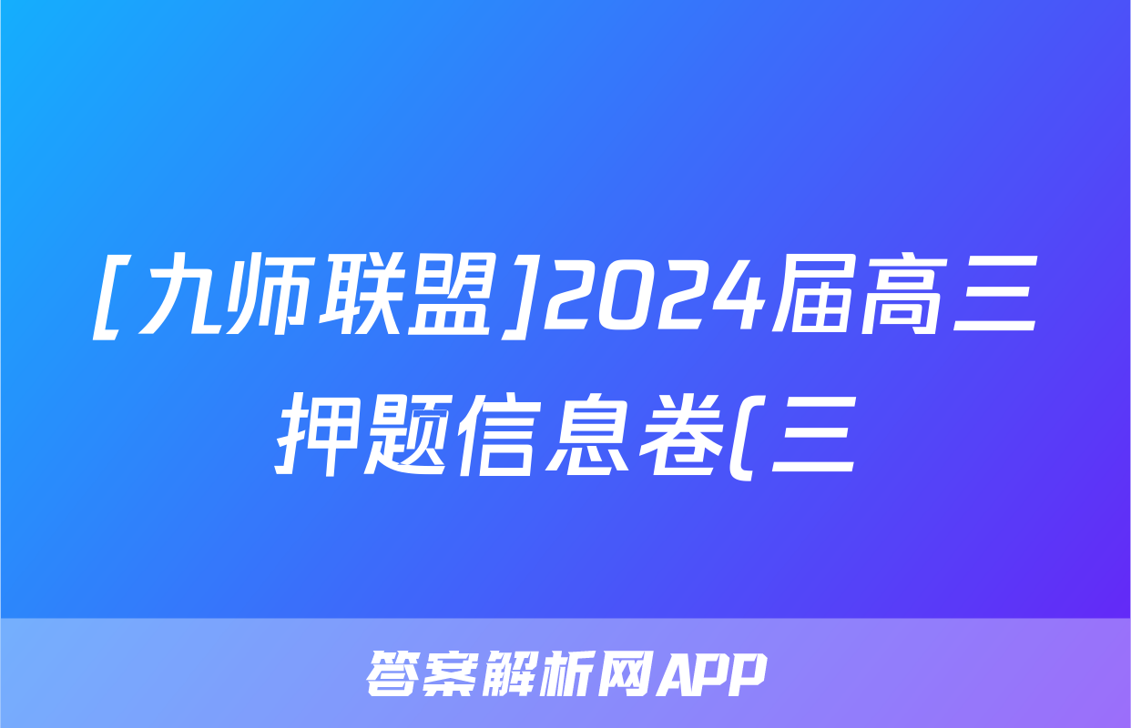 [九师联盟]2024届高三押题信息卷(三)3化学(XKB-G)试题正在持续更新,目前2024-2025衡水金卷先享题答案网为大家整理了相关试题及答案,供大家查缺补漏,高效提升成绩。