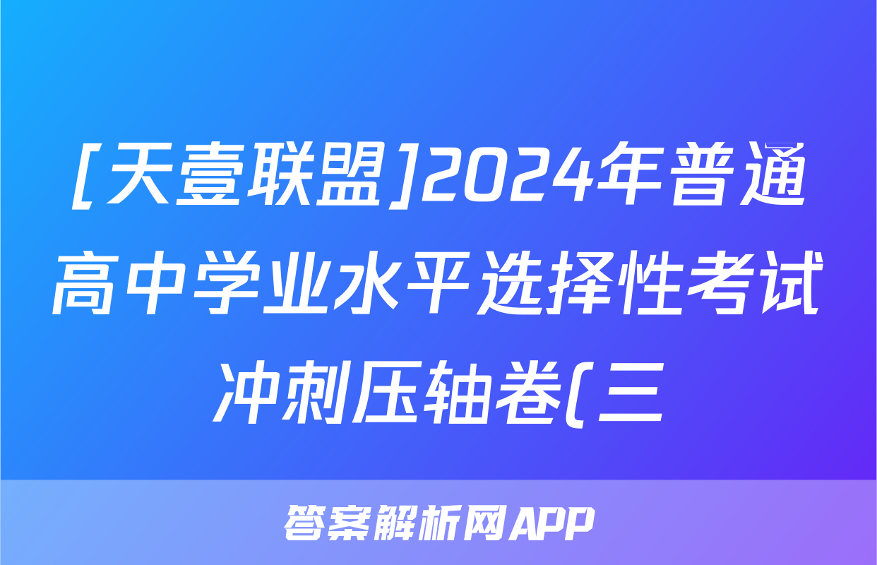 1、[天壹联盟]2024年普通高中学业水选择性考试冲刺压轴卷(三)3答案(物理)