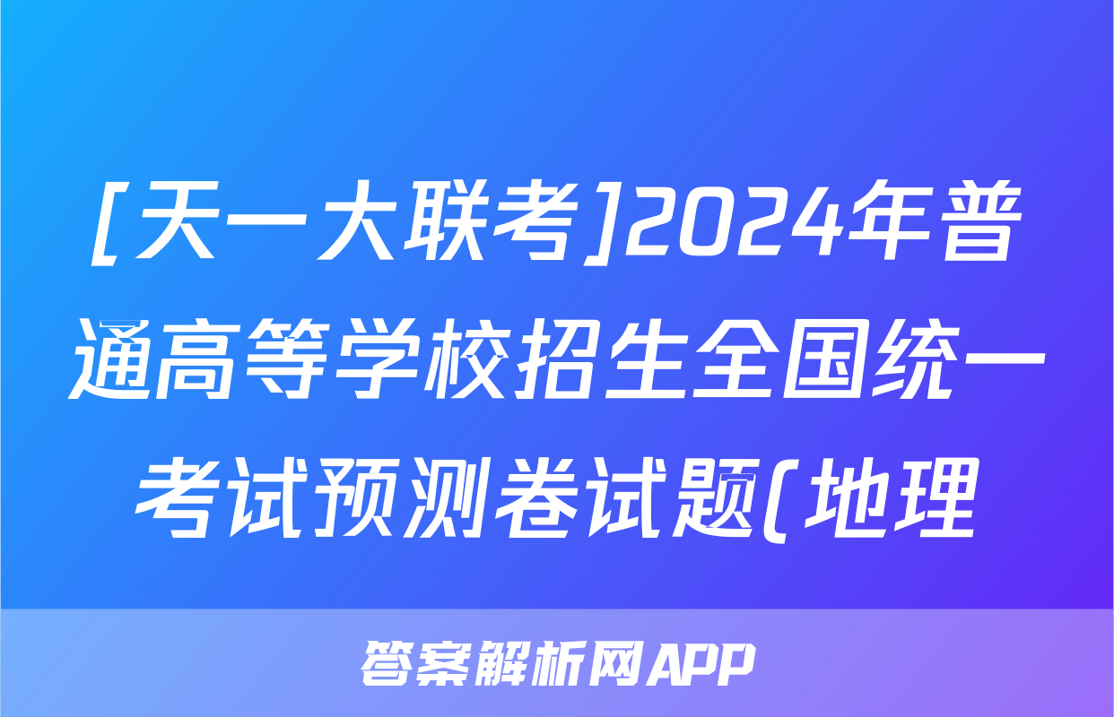 [天一大联考]2024年普通高等学校招生全国统一考试预测卷试题(地理)正在持续更新,目前2024-2025衡水金卷先享题答案网为大家整理了相关试题及答案,供大家查缺补漏,高效提升成绩。