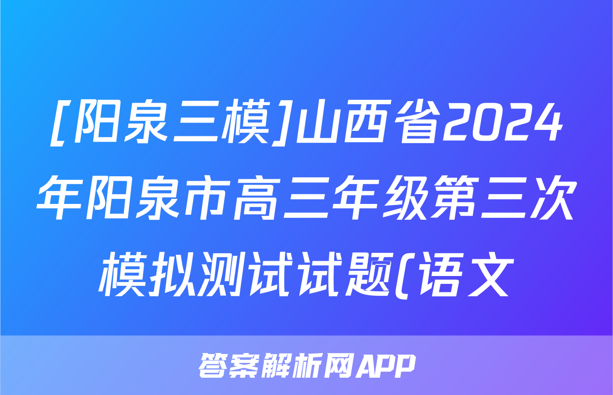 [阳泉三模]山西省2024年阳泉市高三年级第三次模拟测试试题(语文)正在持续更新,目前2024-2025衡水金卷先享题答案网为大家整理了相关试题及答案,供大家查缺补漏,高效提升成绩。