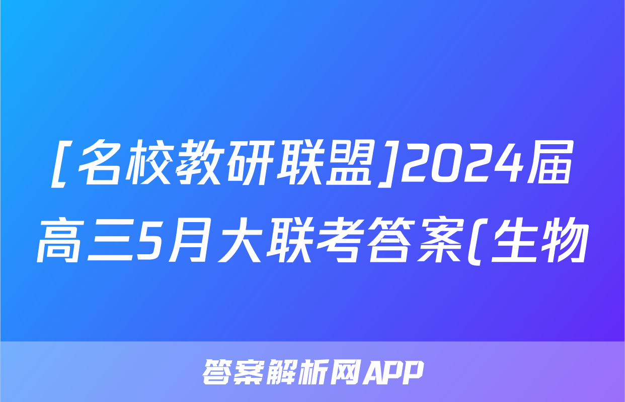 [名校教研联盟]2024届高三5月大联考答案(生物)正在持续更新,目前2024-2025衡水金卷先享题答案网为大家整理了相关试题及答案,供大家查缺补漏,高效提升成绩。