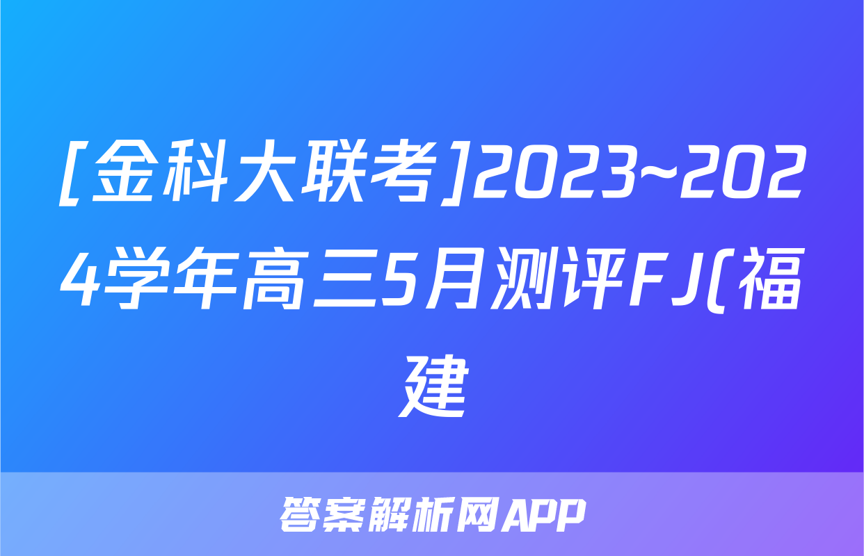 [金科大联考]2023~2024学年高三5月测评FJ(福建)答案(数学)正在持续更新,目前2024-2025衡水金卷先享题答案网为大家整理了相关试题及答案,供大家查缺补漏,高效提升成绩。