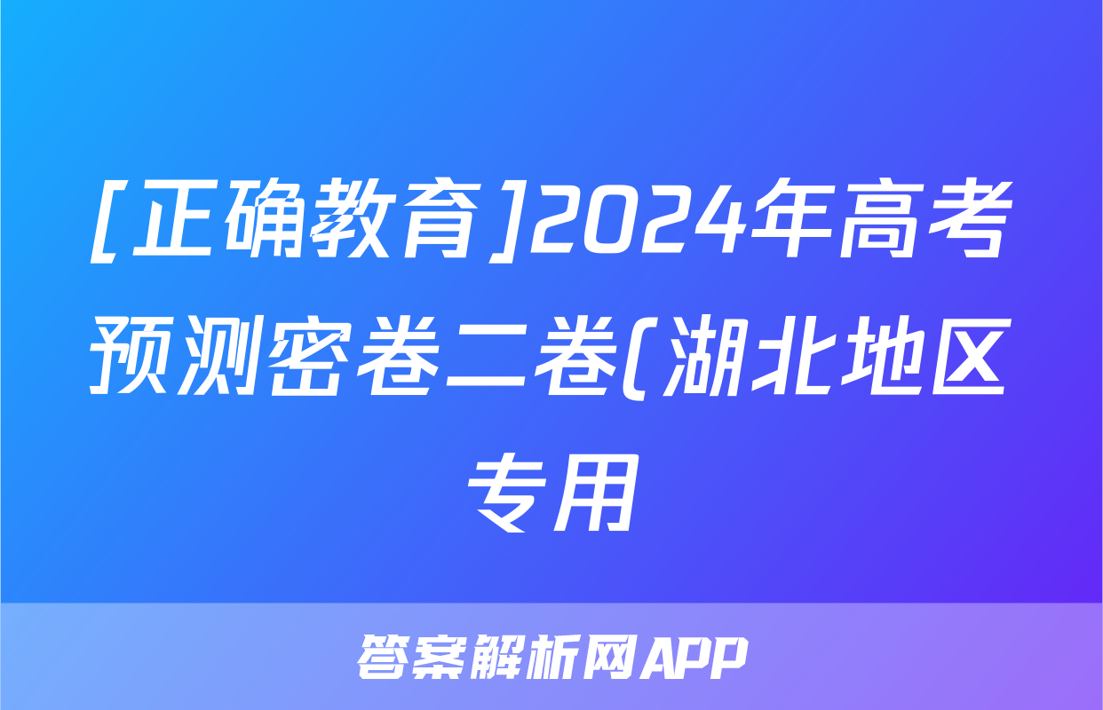 [正确教育]2024年高考预测密卷二卷(湖北地区专用)物理(湖北)试题正在持续更新,目前2024-2025衡水金卷先享题答案网为大家整理了相关试题及答案,供大家查缺补漏,高效提升成绩。