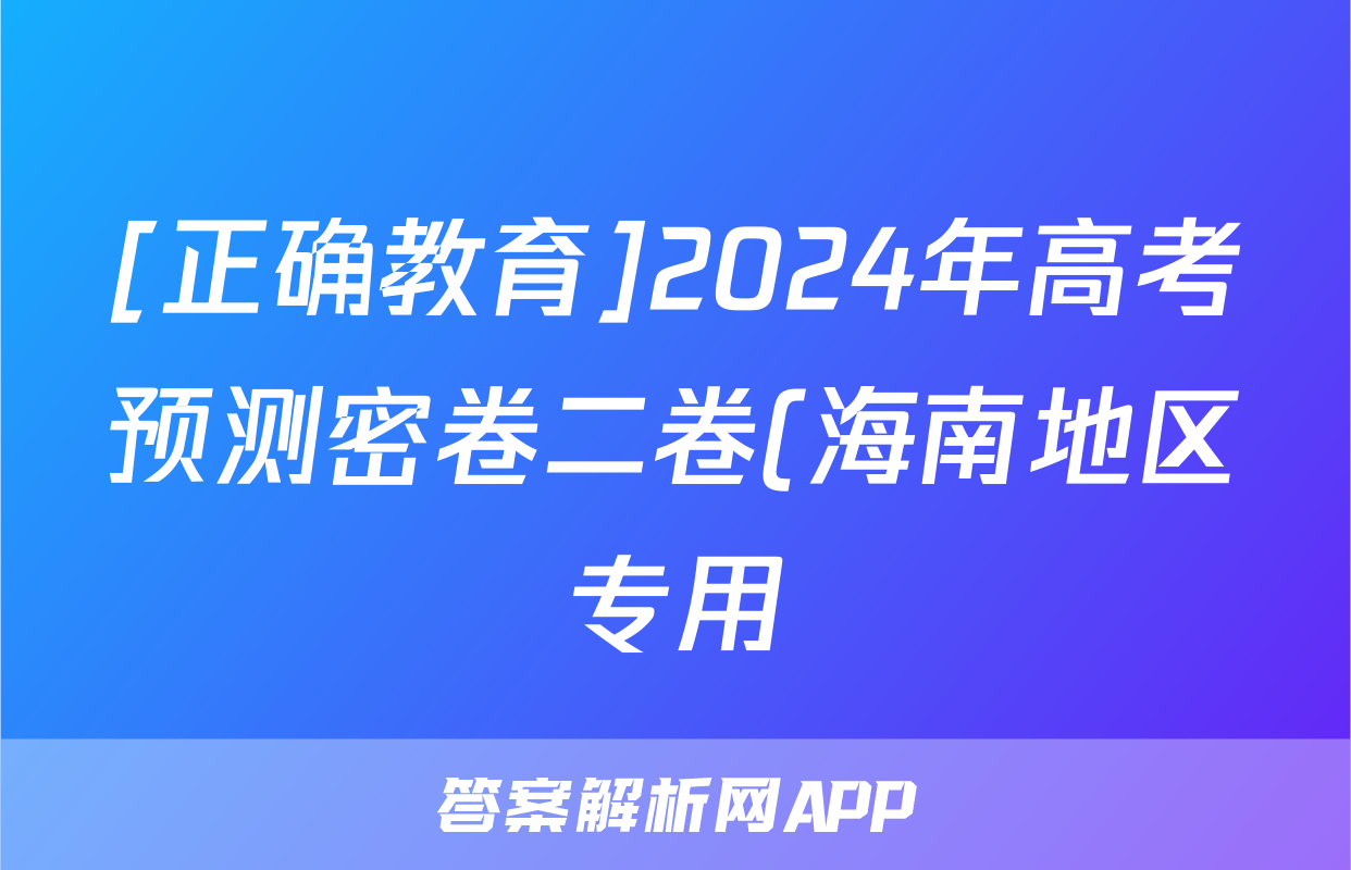 [正确教育]2024年高考预测密卷二卷(海南地区专用)物理(海南)试题正在持续更新,目前2024-2025衡水金卷先享题答案网为大家整理了相关试题及答案,供大家查缺补漏,高效提升成绩。
