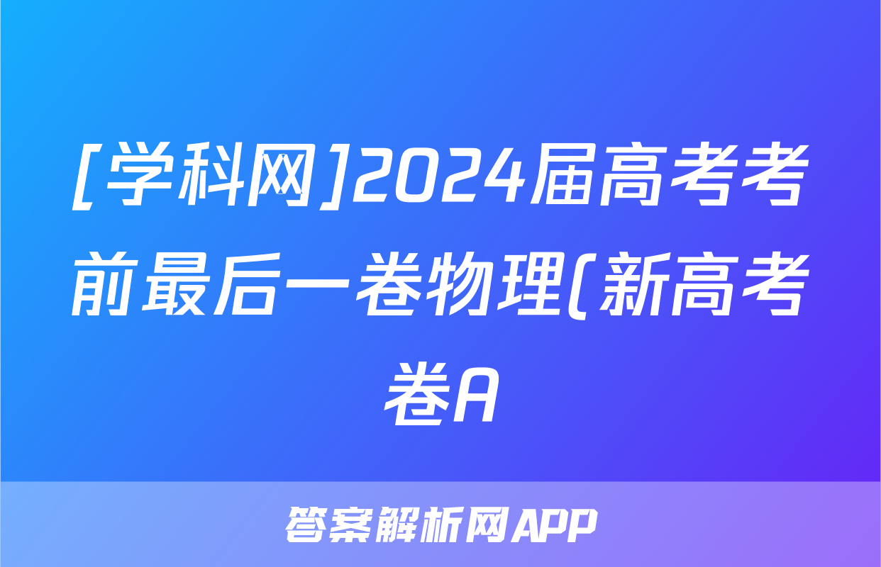 [学科网]2024届高考考前最后一卷物理(新高考卷A)(新教材)答案正在持续更新,目前2024-2025衡水金卷先享题答案网为大家整理了相关试题及答案,供大家查缺补漏,高效提升成绩。