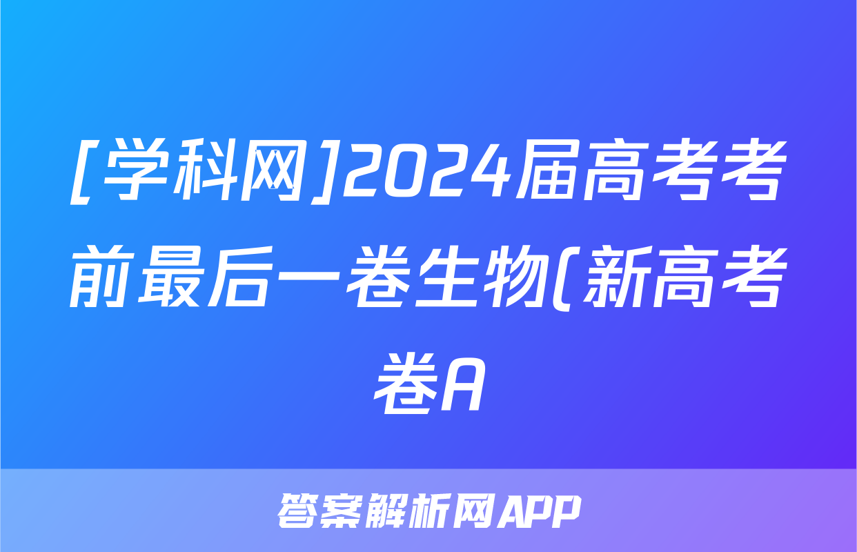 [学科网]2024届高考考前最后一卷生物(新高考卷A)(新教材)试题正在持续更新,目前2024-2025衡水金卷先享题答案网为大家整理了相关试题及答案,供大家查缺补漏,高效提升成绩。