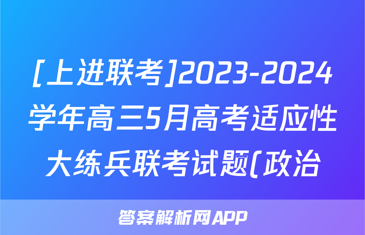 [上进联考]2023-2024学年高三5月高考适应性大练兵联考试题(政治)正在持续更新,目前2024-2025衡水金卷先享题答案网为大家整理了相关试题及答案,供大家查缺补漏,高效提升成绩。