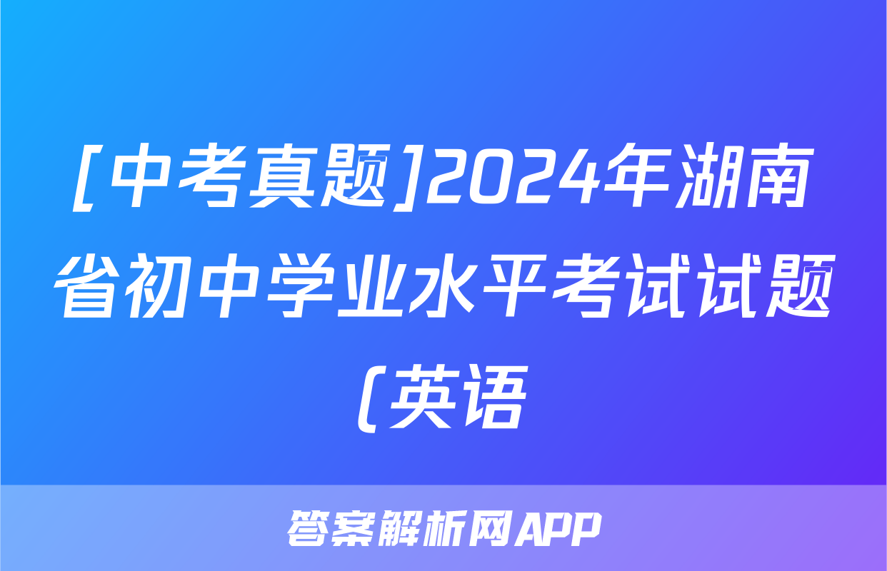 [中考真题]2024年湖南省初中学业水平考试试题(英语)
