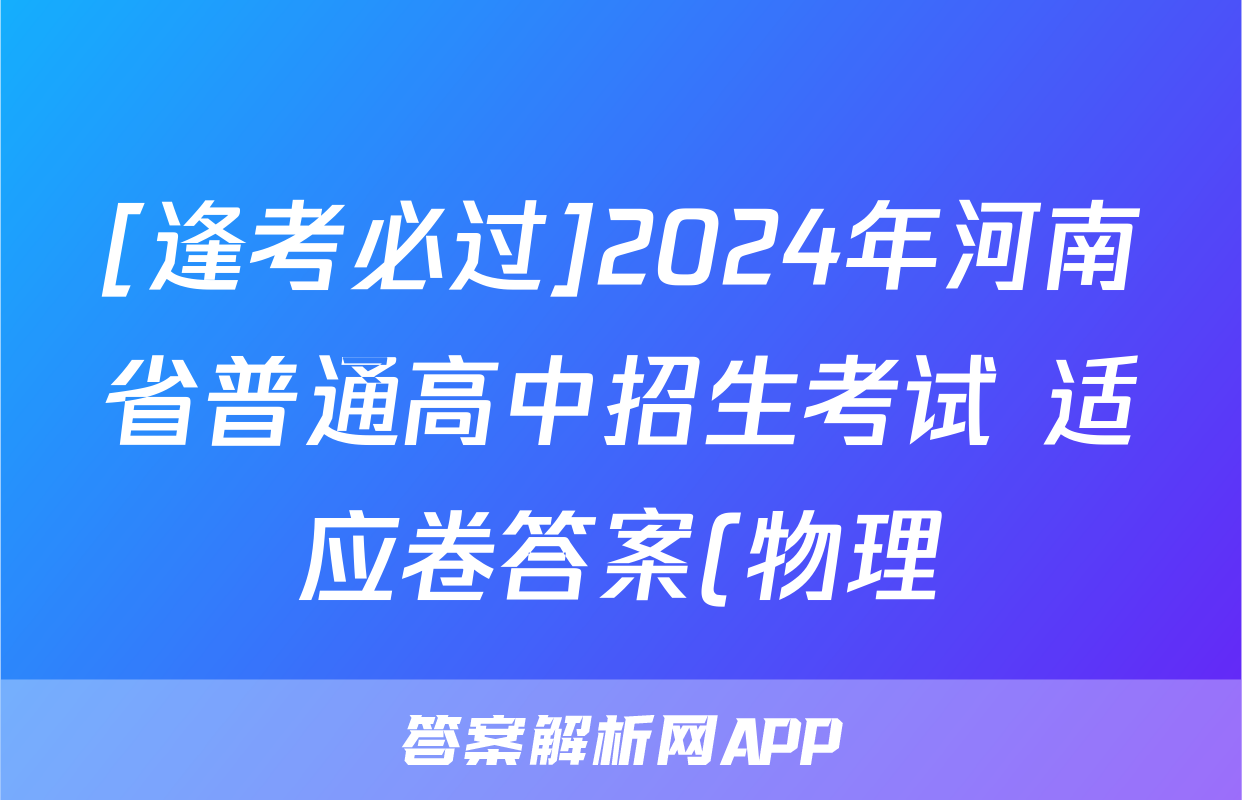 [逢考必过]2024年河南省普通高中招生考试 适应卷答案(物理)