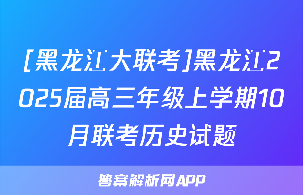 [黑龙江大联考]黑龙江2025届高三年级上学期10月联考历史试题正在持续更新,目前2024-2025衡水金卷先享题答案网为大家整理了相关试题及答案,供大家查缺补漏,高效提升成绩。