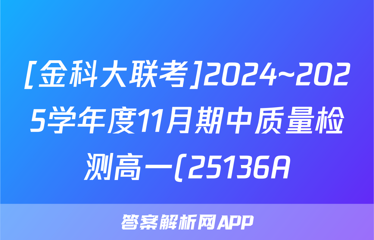 [金科大联考]2024~2025学年度11月期中质量检测高一(25136A)语文试题正在持续更新,目前2024-2025衡水金卷先享题答案网为大家整理了相关试题及答案,供大家查缺补漏,高效提升成绩。