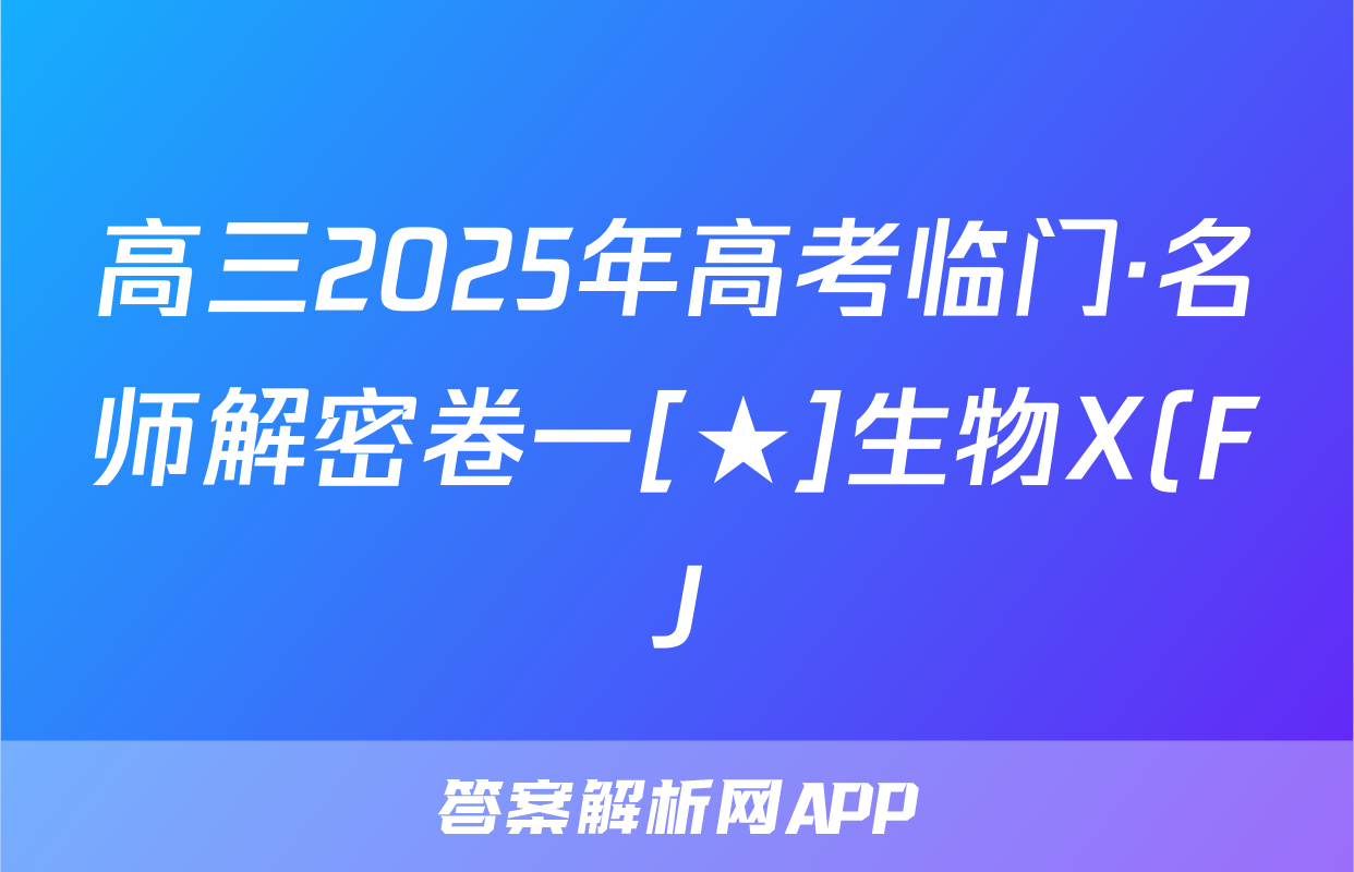 高三2025年高考临门·名师解密卷一[★]生物X(FJ)答案正在持续更新,目前2024-2025衡水金卷先享题答案网为大家整理了相关试题及答案,供大家查缺补漏,高效提升成绩。